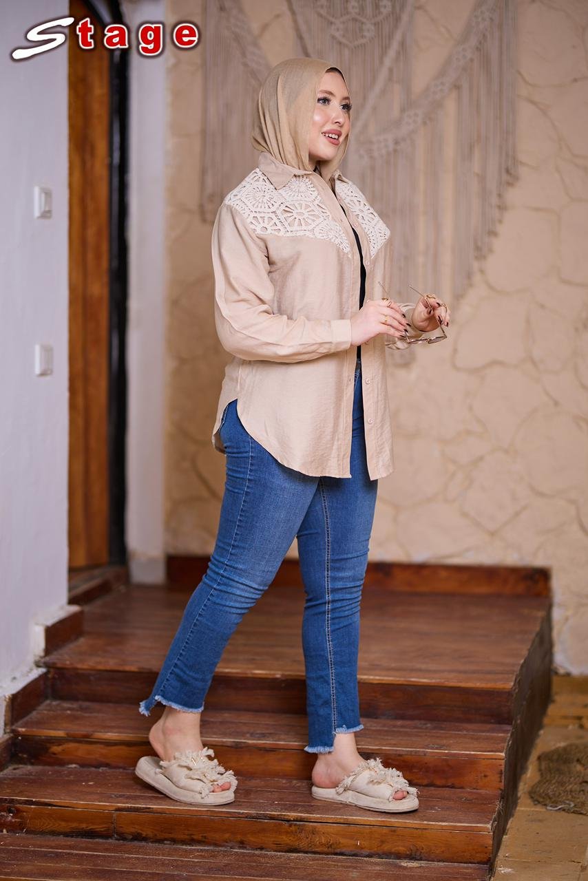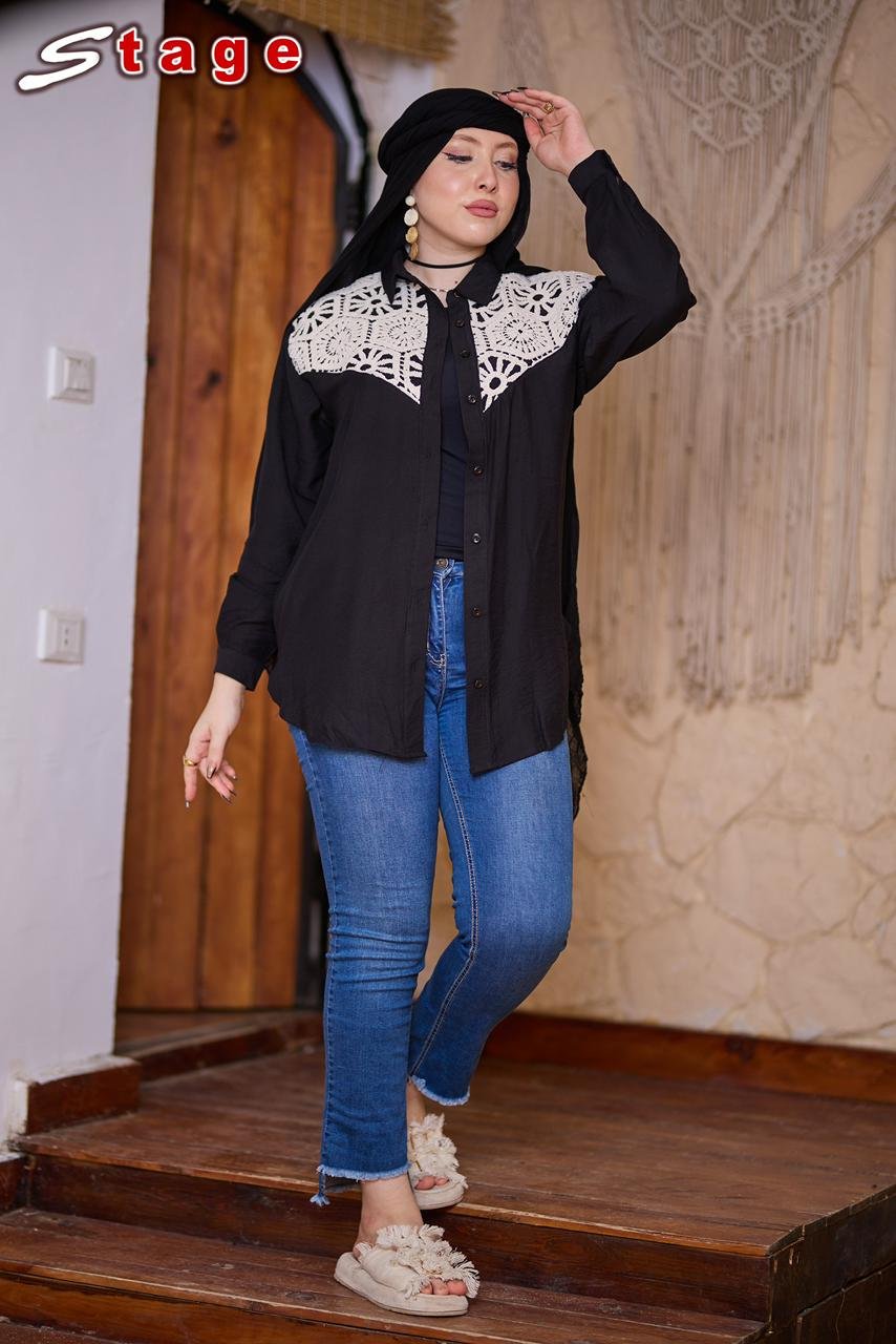 شميز مصنوع من خامه الكتان المعالج ضد الانكماش مع بعض التطعيمات من الجبير القطن